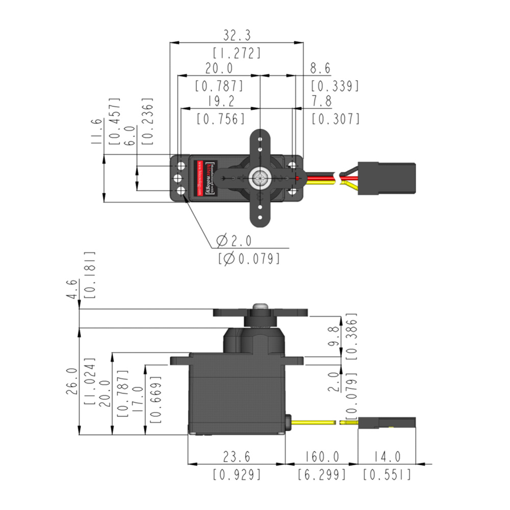 The MD65MG is an 11.6mm, metal gear, 12-gram micro actuator featuring single output ball bearing, cored brushed motor, and contactless encoder. The MD65MG is often used in hobby applications where space and weight are of the utmost importance. The MD65MG utilizes PWM protocol control within a standard voltage range from 4.8V to 6 volts.